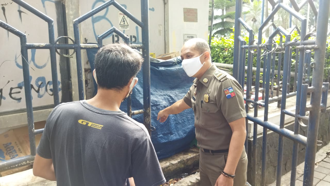 sanga.id. Kepala Unit (BKO) Satpol PP Kecamatan Bogor Tengah Jamil SAP melakukan koordinasi dengan Lurah Pabaton Delly Thamrin, Selasa (25/5/2021) untuk melakukan penertiban para Pedagang Kaki Lima ( PKL ) yang berada disekitar area gardu listrik milik PLN yang berada di area Bank BTN Jalan Pengadilan.