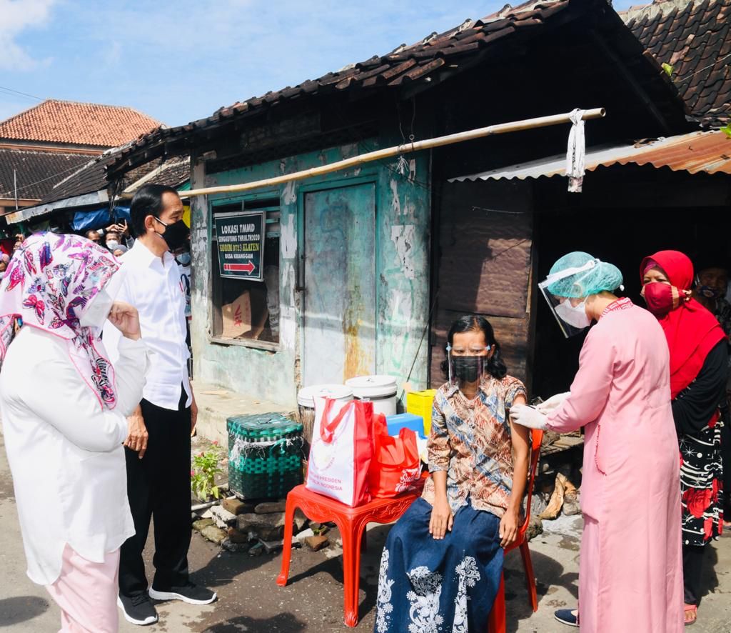 “Pagi hari ini saya datang untuk meninjau vaksinasi dari pintu ke pintu, vaksinasi _door to door_ yang dilaksanakan secara jemput bola mendatangi masyarakat, mendatangi rakyat, petugas datang dari rumah ke rumah,” ucap Presiden dalam keterangannya usai meninjau kegiatan vaksinasi di Kabupaten Klaten.