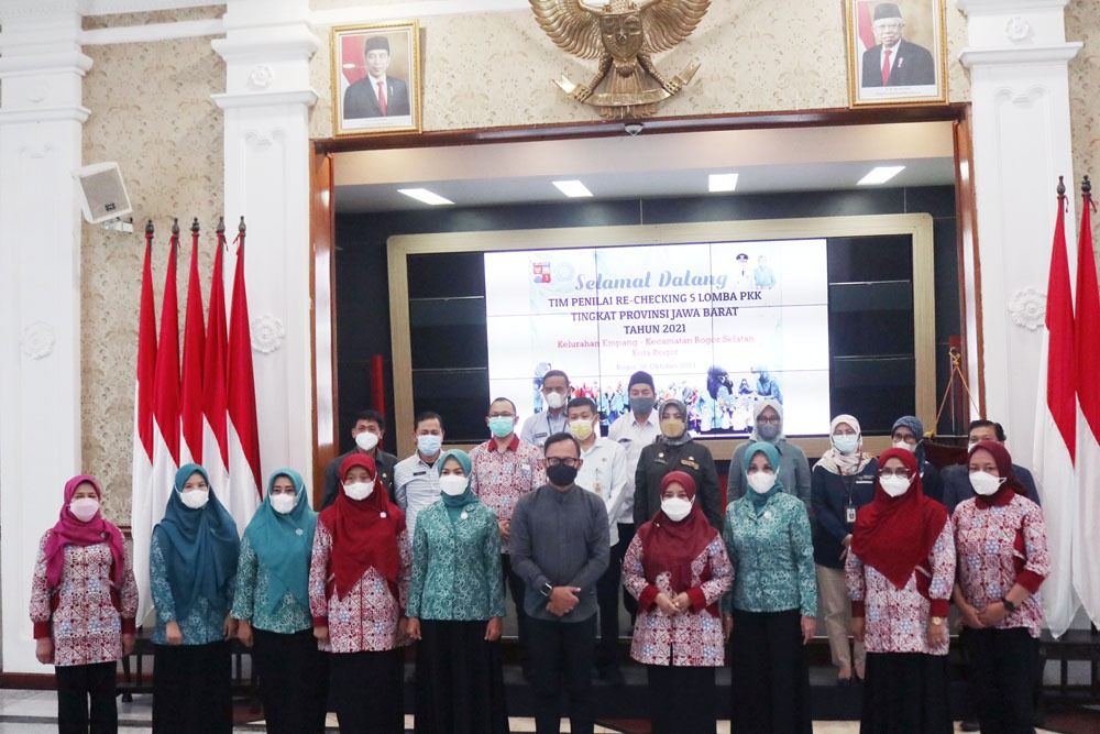*BOGOR. Pemerintah Kota (Pemkot) Bogor bersama Tim Penggerak PKK Kota Bogor menerima Tim Penilai Re-checking lima lomba PKK tingkat Provinsi Jawa Barat di Paseban Sri Bima, Balai Kota Bogor, Selasa (26/10/2021).