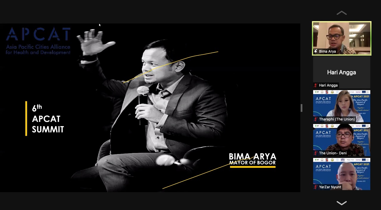 BOGOR. Wali Kota Bogor, Bima Arya bersama Wali Kota Balanga City, Filipina, Francis Anthony S. Garcia mempresentasikan deklarasi The 6th APCAT – APCAT Pacific Summit Of Mayors 2021 secara virtual, Selasa (7/12/2021).