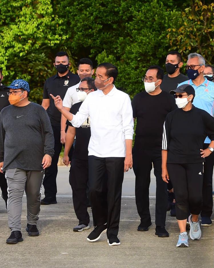 BINTAN. Mengawali kunjungan kerjanya di Provinsi Kepulauan Riau, Selasa, 25 Januari 2022, Presiden Joko Widodo berolahraga bersama sejumlah menteri. Sekitar pukul 06.40 WIB, Presiden mulai berjalan kaki mengelilingi area The Sanchaya Resort Bintan, Kabupaten Bintan.