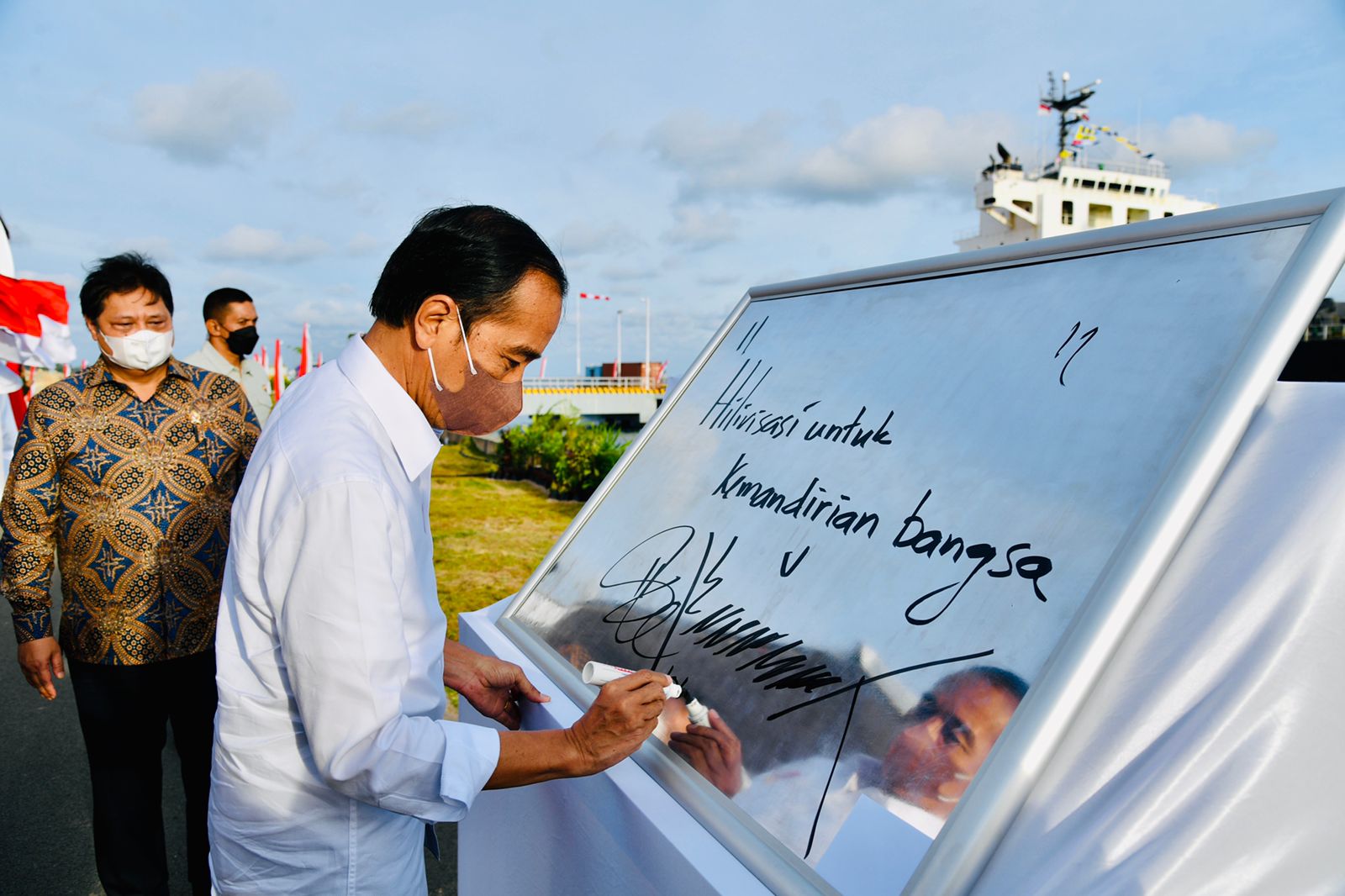 “Saya terima kasih ada perusahaan-perusahaan seberani ini membangun dengan investasi tentu saja dengan risiko-risiko yang ada. Kita harapkan semua bahan mentah kita olah sendiri di Tanah Air,” ujar Presiden.