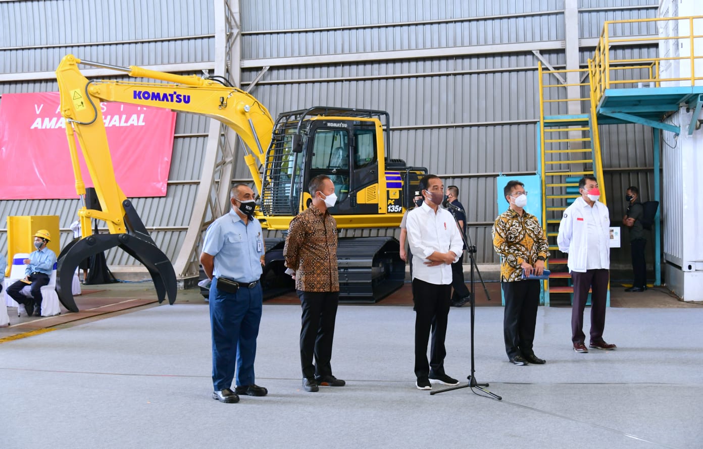 “Ini kita harapkan terus bergerak di industri yang lain di pabrik-pabrik yang lain sehingga bisa kita cegah karyawan kita dari terpaparnya Covid,” ujar Presiden.