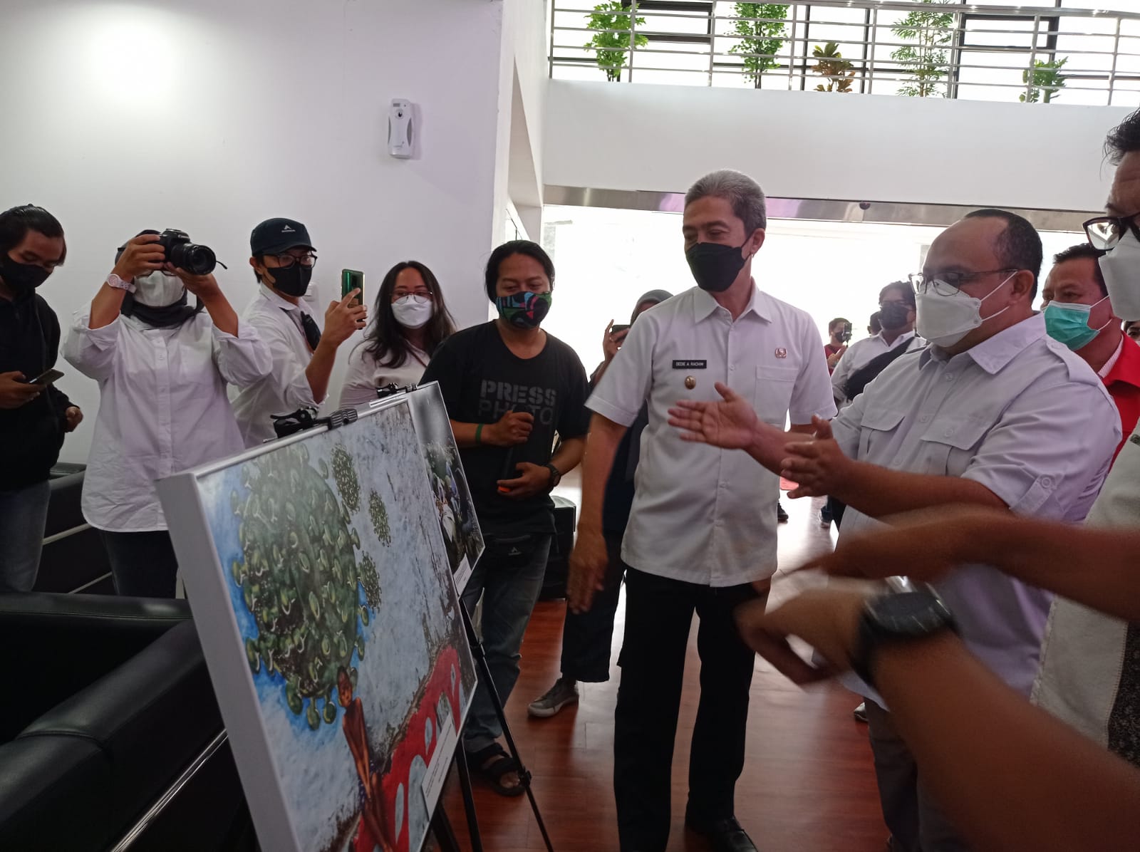 . BOGOR. Persatuan Wartawan Indonesia (PWI) Kota Bogor menggelar pameran foto dan donasi kemanusiaan di gedung DPRD Kota Bogor pada Rabu (23/2/2022).