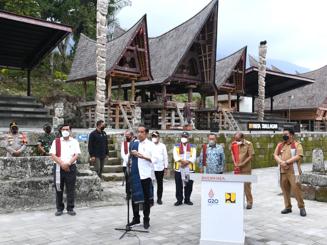 SAMOSIR. Presiden Joko Widodo meresmikan penataan kawasan Huta Siallagan, Kabupaten Samosir, dalam kunjungan kerjanya ke Provinsi Sumatera Utara, pada Rabu, 2 Februari 2022. Dalam sambutannya, Presiden Jokowi mengapresiasi penataan kawasan tersebut sehingga menjadi lebih menarik, tertata rapi, dan berkelas.