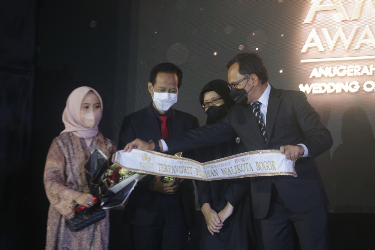 BOGOR. Wali Kota Bogor Bima Arya bersama sang istri Yane Ardian menghadiri malam Anugerah MC Pranatacara dan Wedding Organizer Bogor (AMOR AWARD) 2022 di Gedung Braja Mustika, Bogor Barat, Rabu (17/3/2022).