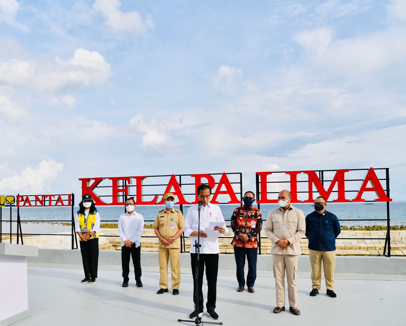 “Saya sangat terkesan sekali hasil penataan kawasan di Kota Kupang. Dari kawasan Kota Lama Kupang, tepatnya di Pantai Lai-Lai Besi Kopan (LLBK), dan juga di sini di Pantai Kelapa Lima, serta yang ketiga Koridor 3 Jalan Frans Seda,” ujar Presiden di Pantai Kelapa Lima, Kota Kupang.