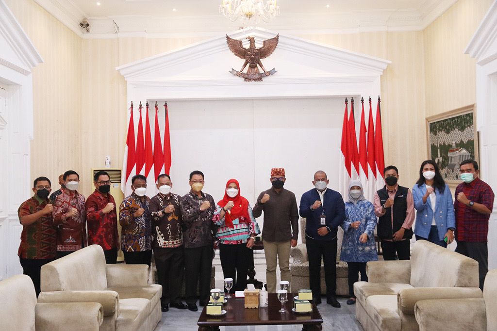 BOGOR. Wali Kota Bogor, Bima Arya menerima kunjungan Wali Kota Bandar Lampung, Eva Dwiana di Paseban Suradipati, Balai Kota Bogor, Selasa (15/3/2022). Tujuan kedatangannya dalam rangka diskusi mengenai persiapan HUT Asosiasi Pemerintah Kota Seluruh Indonesia (APEKSI) ke-22 di Kota Bandar Lampung 27-29 Mei mendatang.