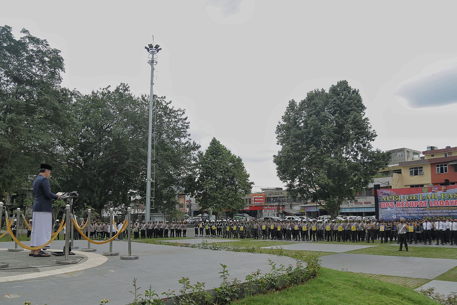 BOGOR. Pemerintah Kota (Pemkot) Bogor bersama Polresta Bogor Kota dan TNI menggelar Apel Pasukan Operasi Terpusat Ketupat Lodaya 2022 di Alun-alun Kota Bogor, Jalan Kapten Muslihat, Jumat (22/4/2022).
