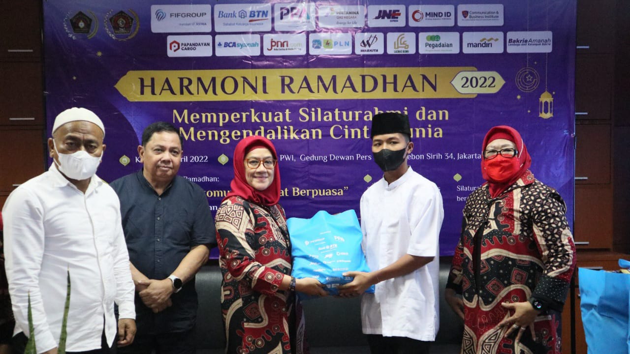 JAKARTA. Menyambut Ramadhan 1443 Hijriah, PWI Pusat dan Pengurus Pusat IKWI beri santunan kepada ratusan anak yatim dan dhuafa. Kegiatan Harmoni Ramadhan yang berlangsung Kamis, 21 April 2022 ini, mengusung tema Memperkuat Silaturahmi dan Mengendalikan Cinta Dunia.