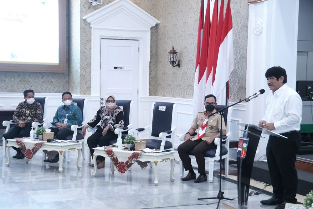 BOGOR. Kementerian Agraria dan Tata Ruang (ATR) melalui Dirjen Pengendalian dan Penertiban Tanah dan Ruang (PPTR) melakukan verifikasi dan klarifikasi lahan sawah yang dilindungi bersama kepala daerah di Paseban Sri Bima, Balai Kota Bogor, Kamis (14/4/2022).