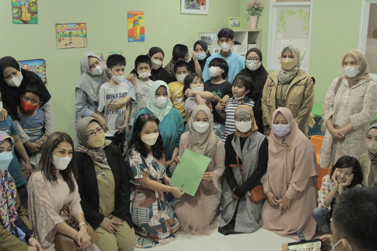 BOGOR. Ketua TP PKK Kota Bogor, Yane Ardian didampingi perwakilan dari Dinas Sosial (Dinsos), Dinas Pendidikan (Disdik) dan Yayasan Rumah Kedua, berbagi dengan para yatim dan kaum dhuafa.