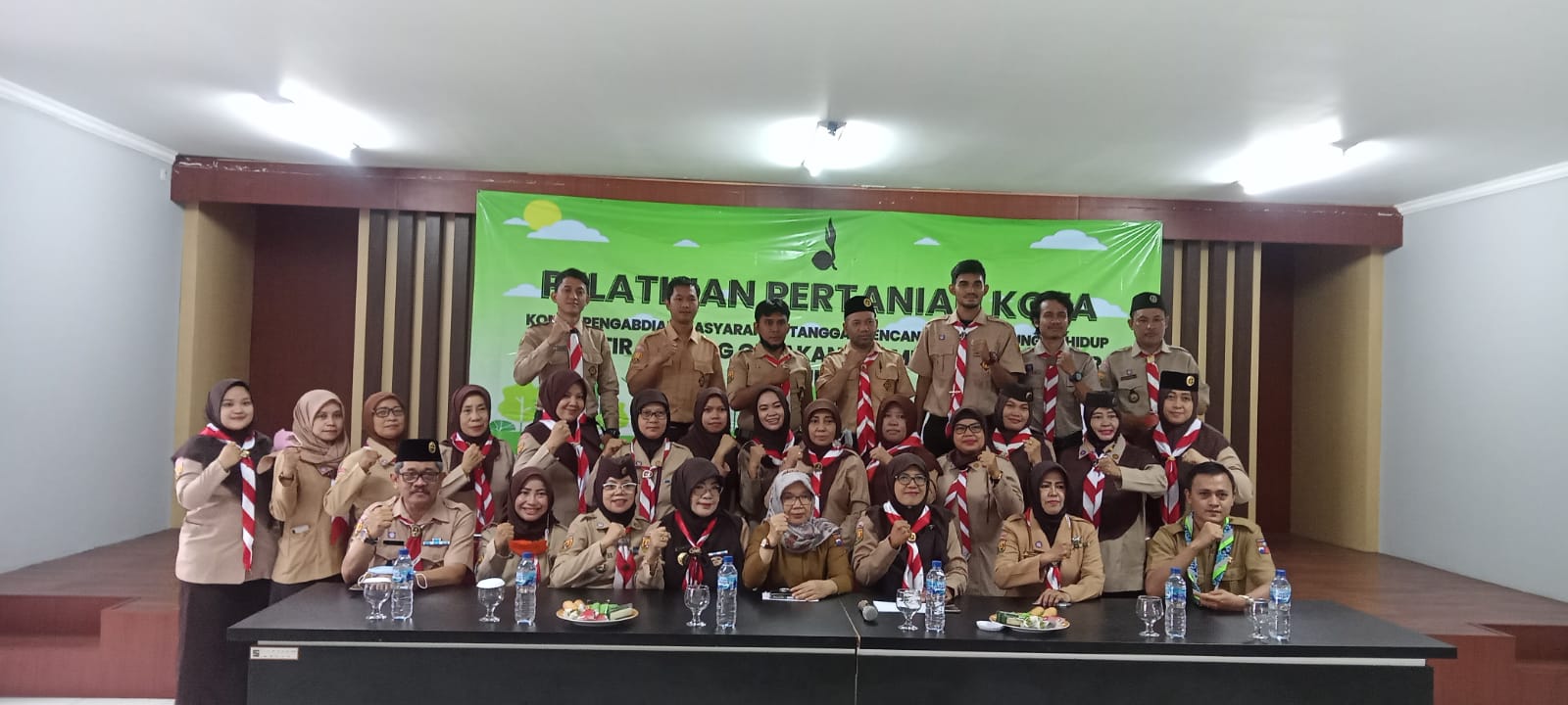 BOGOR. Komisi pengabdian masyarakat, tanggap bencana dan lingkungan hidup Kwartir Cabang (Kwarcab) Gerakan Pramuka kota Bogor menggelar pelatihan pertanian kota bertempat aula kantor kecamatan Bogor Timur, Senin (30/5/2022). Kegiatan tersebut diikuti oleh sejumlah peserta dari perwakilan kwartir ranting dengan narasumber Iman Santoso dari Dinas Lingkungan Hidup kota Bogor dan Mahfudin dari Dinas Ketahanan Pangan dan Pertenakan Provinsi Jawa Barat.