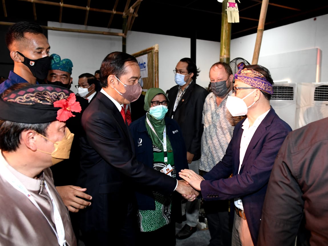 BADUNG. Selepas menghadiri The 7th Global Platform for Disaster Risk Reduction (GPDRR) 2022 yang digelar di Bali Nusa Dua Convention Center (BNDCC), Presiden Joko Widodo meninjau Rumah Resiliensi Indonesia di Pameran Solusi Kebencanaan Adexco 2022 di Bali Art Collection, Kabupaten Badung, Provinsi Bali, pada Rabu, 25 Mei 2022.