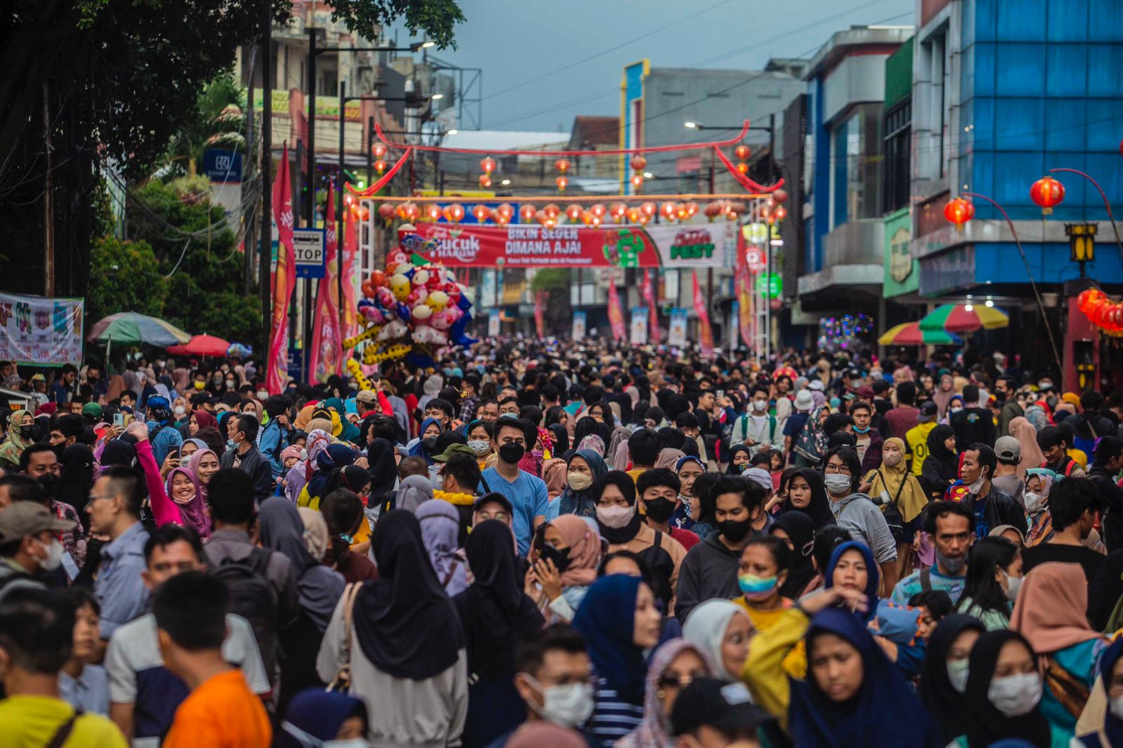 BOGOR. Sejak, Sabtu (11/6/2022) siang hingga malam, ribuan warga tumpah ruah antusias menyaksikan Suryakencana Festival 2022 (Surken Fest) yang digelar Pemerintah Kota (Pemkot) Bogor sepanjang Jalan Suryakencana, mulai dari Lawang Suryakencana hingga Gang Aut.Surken Fest yang baru pertama kali digelar ini menampilkan festival seni budaya, hiburan, bazar UMKM dan kuliner khas Bogor yang berlangsung mulai pukul 16.00-24.00 WIB. Kemeriahan dan antusiasme warga yang datang tidak terhalang hujan yang mulai turun menjelang sore.