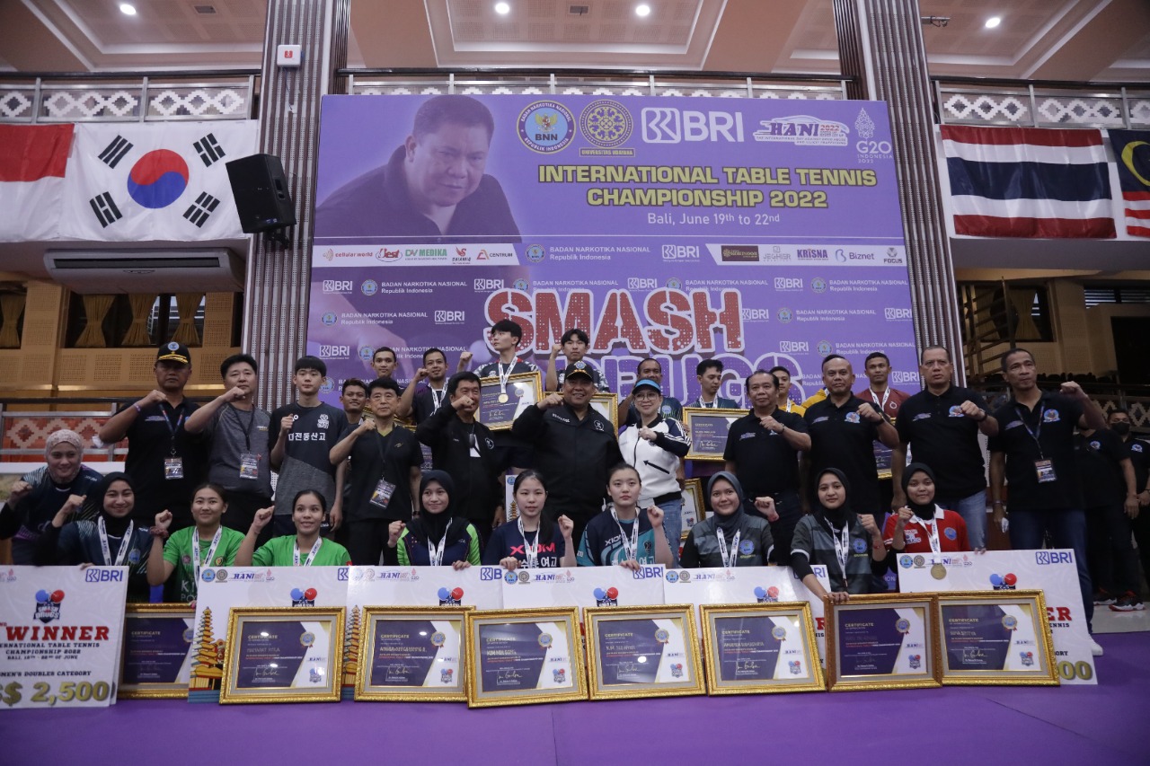 BALI. Turnamen akbar Smash on Drugs International Table Tennis Championship 2022 telah berakhir dengan sukses dan meriah. Kejuaraan ini resmi ditutup pada Rabu, 22 Juni 2022.