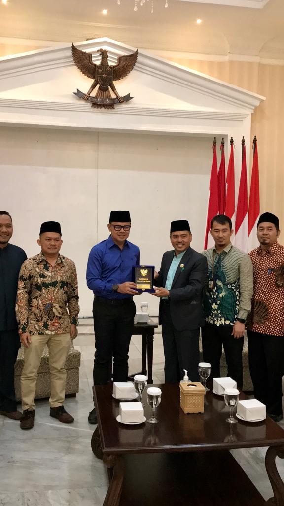 BOGOR. Pimpinan Badan Amil Zakat Nasional (Baznas) Bidang Koordinasi Zakat Nasional KH Achmad Sudrajat melakukan audiensi dengan Wali Kota Bogor Bima Arya di Balaikota Bogor, Kamis (28/7/2022). Dalam pertemuan tersebut dibahas mengenai uji kompetensi dan verifikasi faktual yang akan dilakukan Baznas pusat kepada delapan orang para calon pimpinan Baznas Kota Bogor.