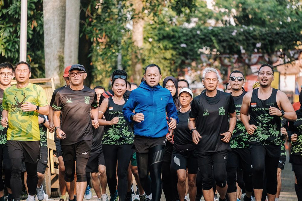 BOGOR. Merayakan 9 tahun komunitas lari Bogor Runners, Wali Kota Bogor, Bima Arya didampingi Kepala Dinas Pemuda dan Olahraga (Dispora) Kota Bogor, Herry Karnadi bersama ratusan anggota Bogor Runners lari sejauh 5 kilometer.