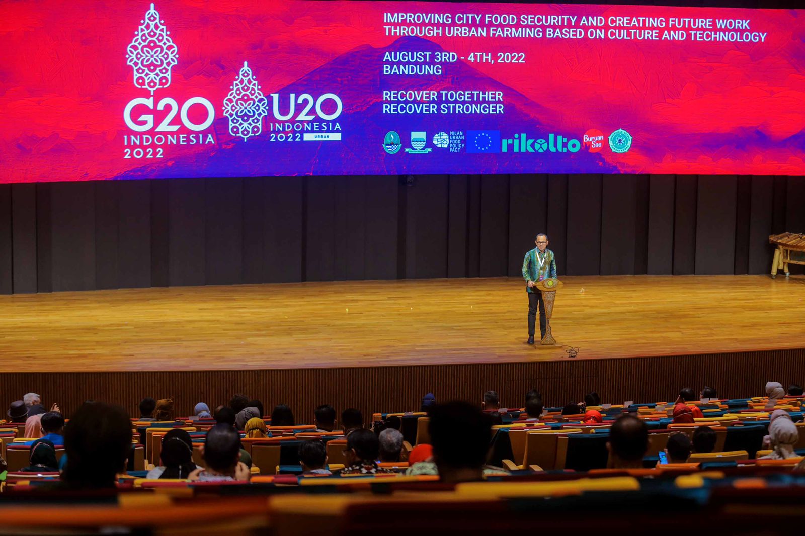 BANDUNG. Wali Kota Bogor Bima Arya menjadi pembicara dalam konferensi internasional Urban20 (U20). U20 merupakan pertemuan outreach group yang bertujuan untuk membawa masalah perkotaan ke garis depan agenda G20. Forum ini diselenggarakan di Bandung, (3/8/2022).