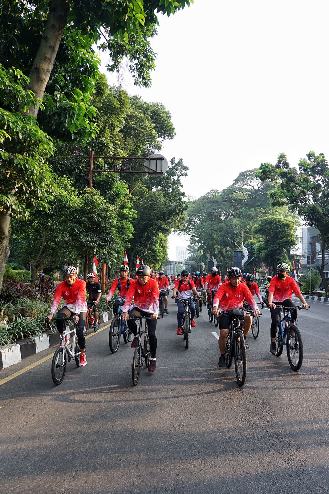 Selain di Kebun Raya Bogor, Menparekraf bersama wali kota juga sempat gowes melintasi ikon Kota Bogor lainnya, seperti Tugu Kujang, Lawang Salapan, Suryakencana dan pedestrian SSA.