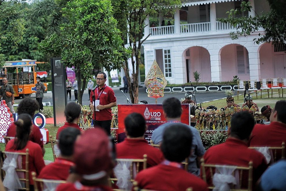 BOGOR. Wali Kota Bogor Bima Arya menyambut kedatangan para delegasi forum Urban 20 (U20) dalam acara Mayor Retreat di Bogor Creative Center (BCC), Jalan Juanda, Bogor Tengah, Kamis (1/9/2022).