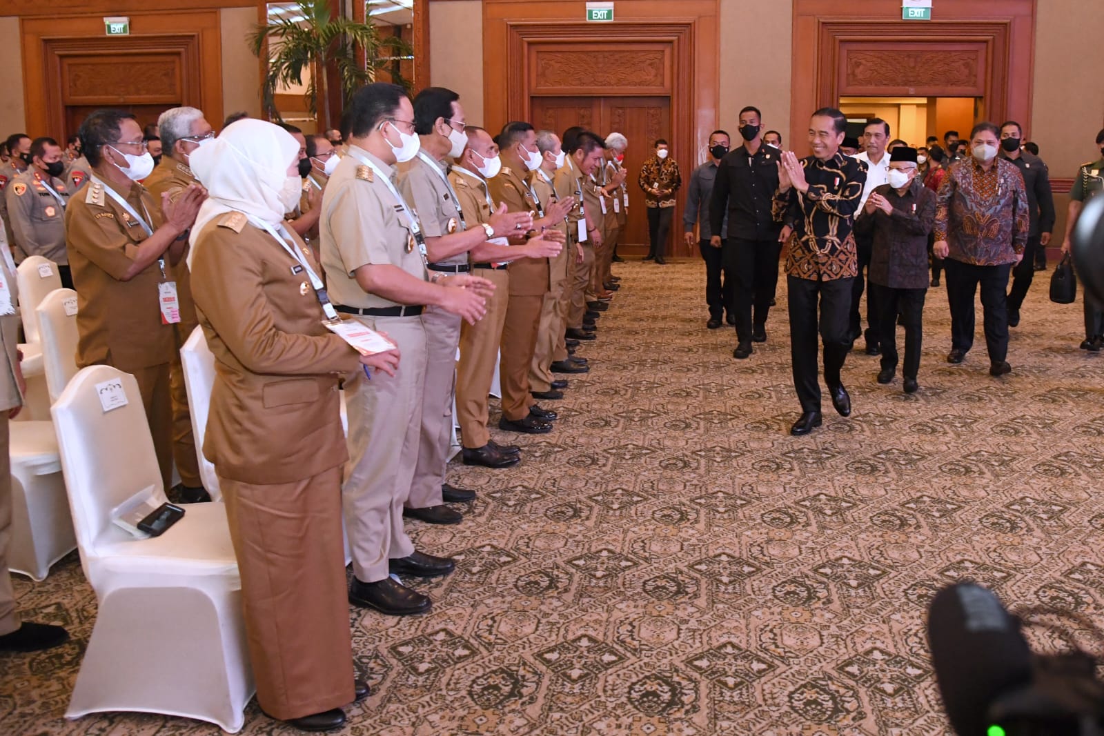 JAKARTA. Presiden Joko Widodo memberikan pengarahan kepada seluruh menteri, kepala lembaga, kepala daerah, pimpinan Badan Usaha Milik Negara (BUMN), panglima daerah militer, kepala kepolisian daerah, dan kepala kejaksaan tinggi di Jakarta Convention Center (JCC), Jakarta, pada Kamis, 29 September 2022. Dalam arahannya, Presiden mengajak semua pihak untuk kompak dan bersatu dalam menangani inflasi karena saat ini inflasi merupakan momok setiap negara.