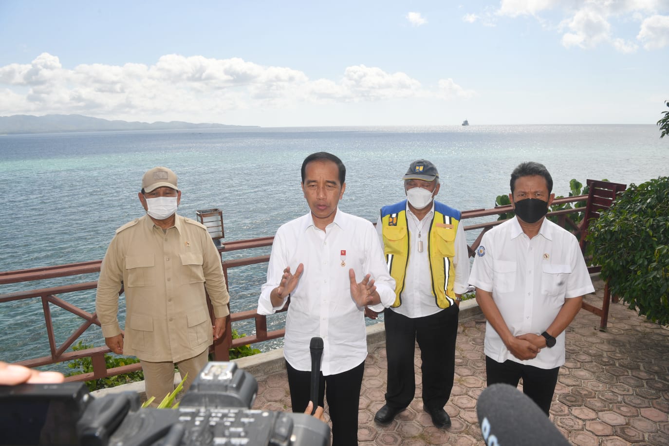 Dalam kesempatan tersebut, Presiden Jokowi mengajak Menteri Pertahanan Prabowo Subianto. Keduanya melihat salah satu titik terluar NKRI yakni Pulau Leti yang berbatasan dengan Timor Leste. Pulau Leti tersebut terlihat dari seberang Pantai Tiakur, tempat Presiden dan rombongan melakukan keterangan pers.