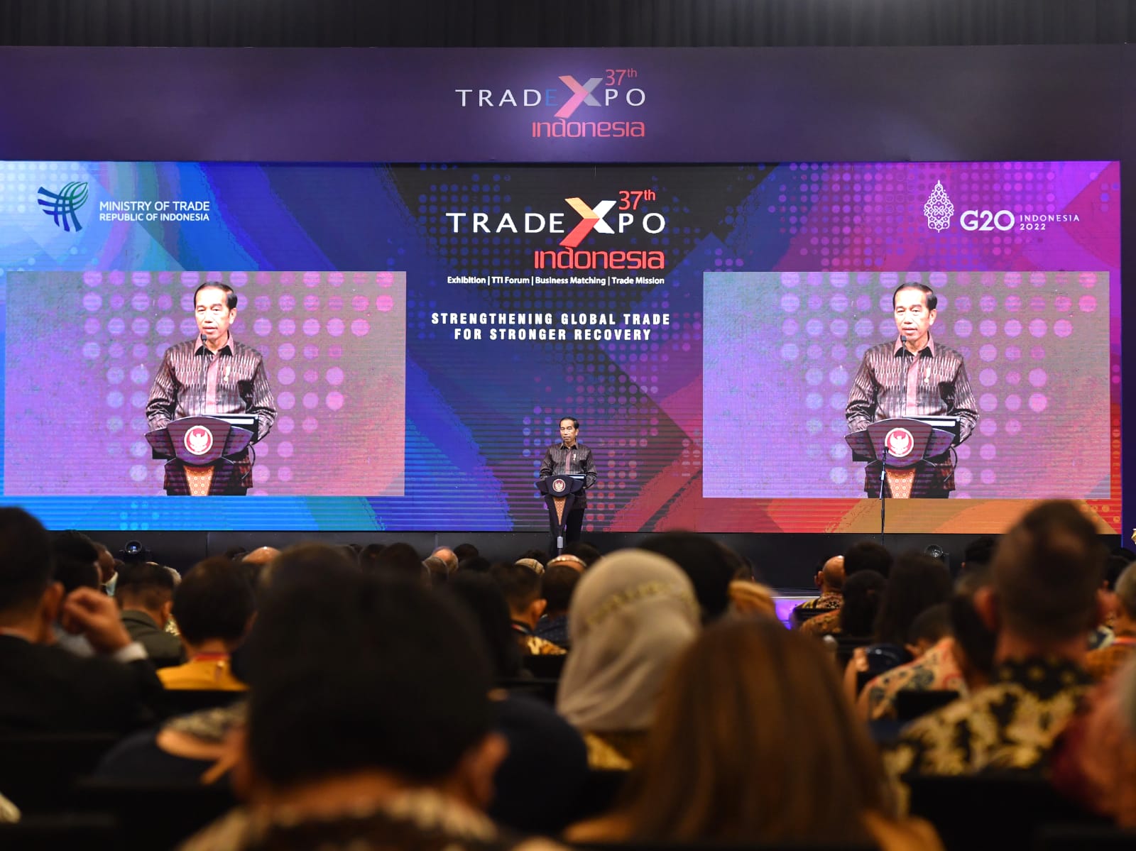 Hal tersebut disampaikan oleh Presiden Joko Widodo dalam sambutannya saat membuka Trade Expo Indonesia (TEI) ke-37 yang digelar di Hall Nusantara, Indonesia Convention Exhibition (ICE) BSD City, Kabupaten Tangerang, Provinsi Banten, pada Rabu, 19 Oktober 2022.