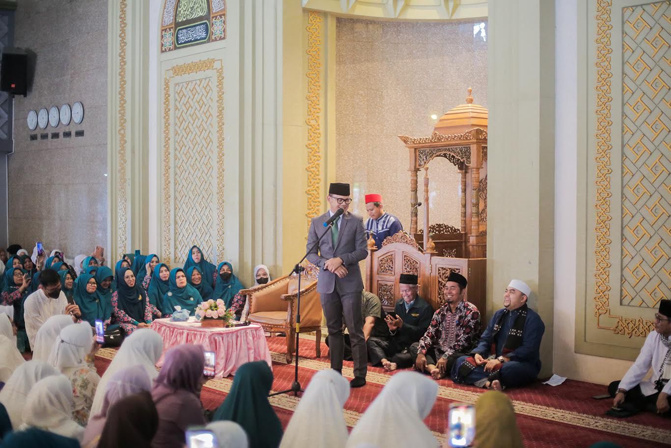 BOGOR. Bersama para jamaah dari majelis taklim se Kota Bogor, jajaran Pemerintah Kota (Pemkot) Bogor, memperingati Maulid Nabi Muhammad SAW 1444 Hijriah di Masjid Raya Al Mi’raj, Jalan Pajajaran, Kota Bogor, Rabu (5/10/2022).