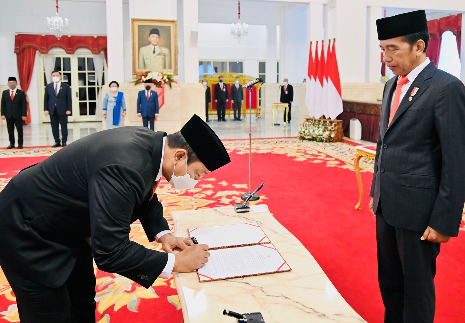 Dalam kesempatan tersebut, Presiden Joko Widodo mengambil sumpah jabatan Kepala LKPP yang dilantik.