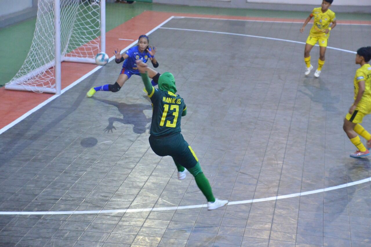 GARUT. Tim futsal putri Kabupaten Bogor berhasil taklukan Kabupaten Cirebon, di SOR Ciateul, Garut, Ahad (30/10). Kabupaten Bogor menang telak 4-0 atas Kabupaten Cirebon, dan mendapatkan poin penuh pada pertandingan perdana di Pekan Olahraga Provinsi (Porprov) XIV Jawa Barat tahun 2022.