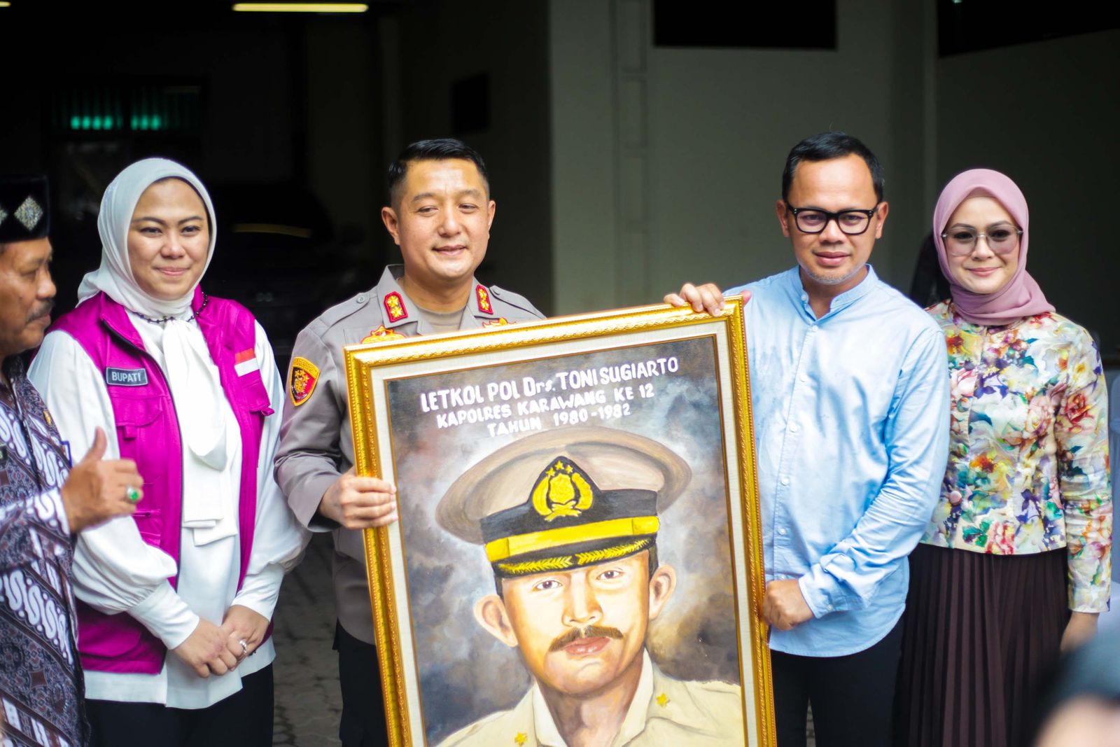 Bima Arya dan keluarga disambut hangat Kapolres Karawang AKBP Aldi Subartono dan didampingi Bupati Karawang Cellica Nurrachadiana.